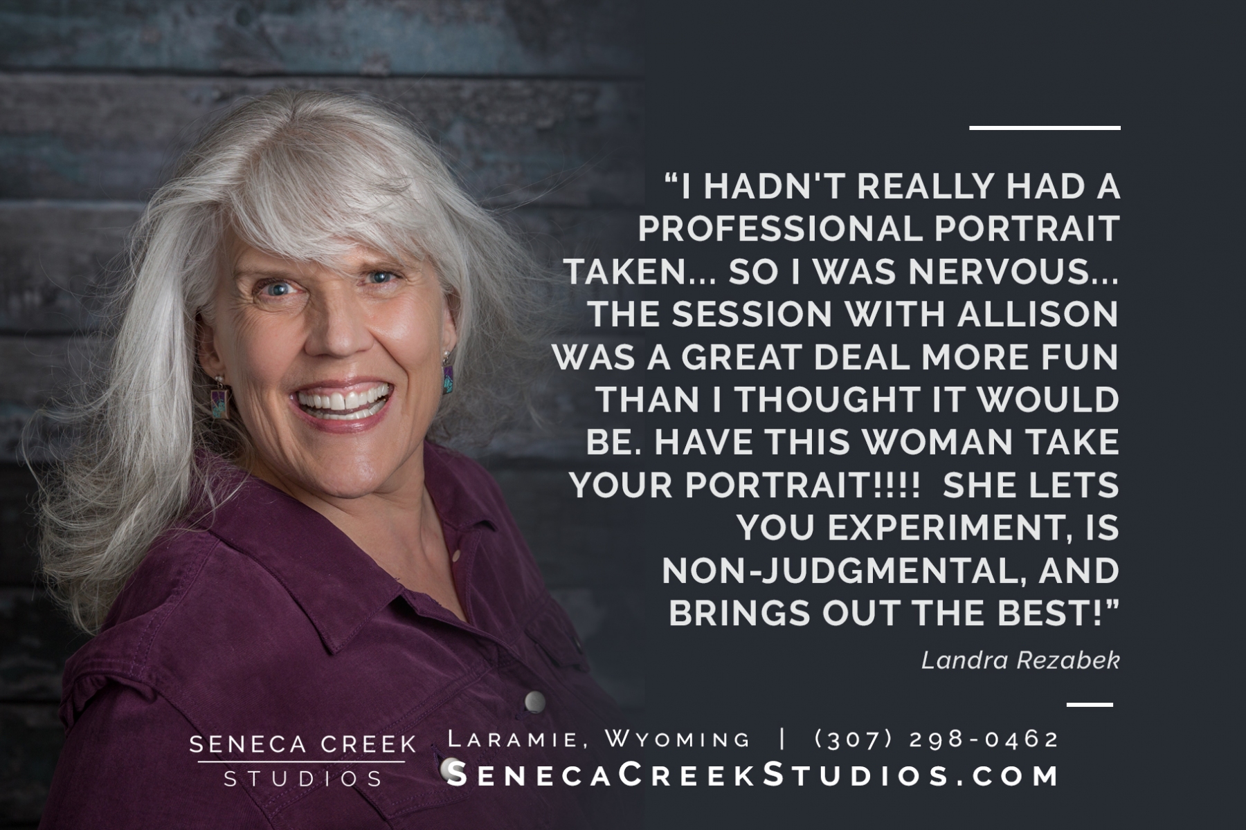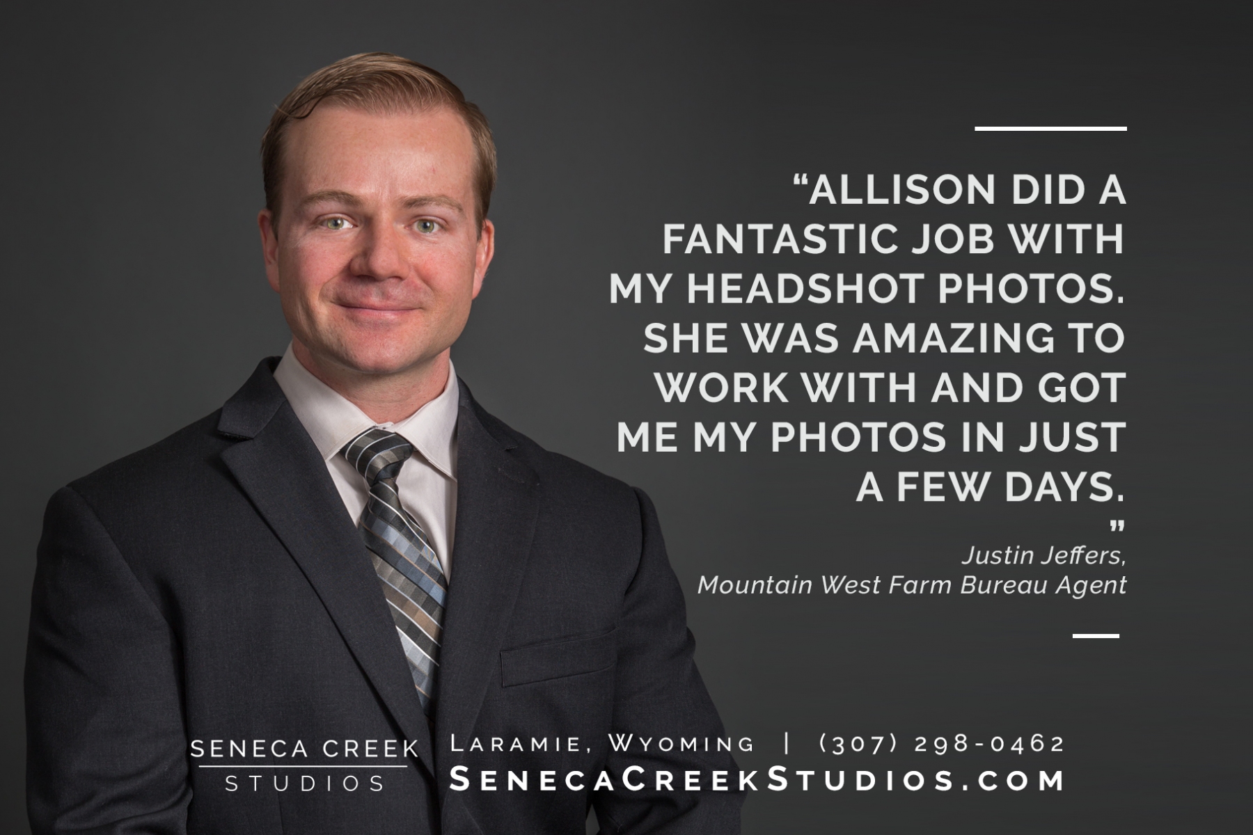 Based out of Laramie, Wyoming we will travel to your office or home, meet you outdoors, or bring our mobile studio to you.